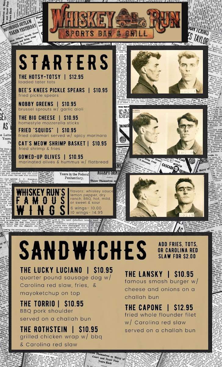 Introducing the menu at Whiskey Run Sports Bar & Grill, where classic comfort meets lively atmosphere. Located in North Charleston, this gem offers an old-school whiskey bar vibe with a modern twist. Whether you're catching the big game on one of four large screens or enjoying karaoke night, the energy here is infectious.